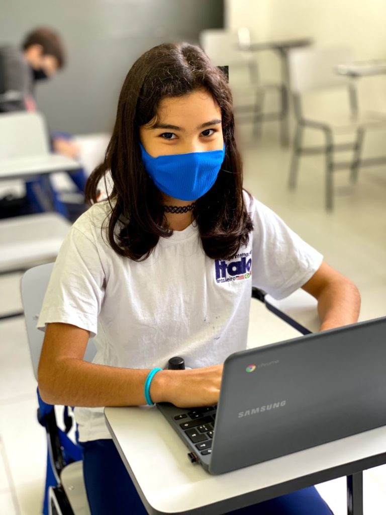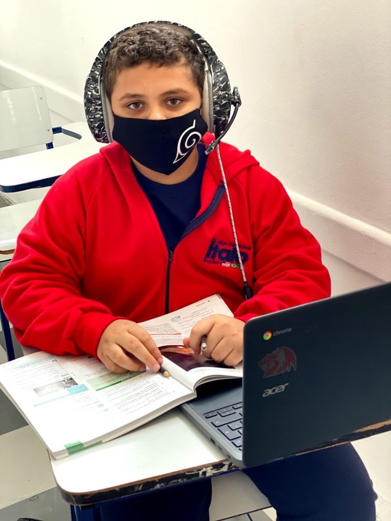Programa pedagógico e plataforma online baseados em inteligência artificial linguística para aprimoramento da escrita e da capacidade de expressão dos estudantes. Alunos e professores recebem devolutivas aprofundadas, com indicações dos principais pontos a evoluir.